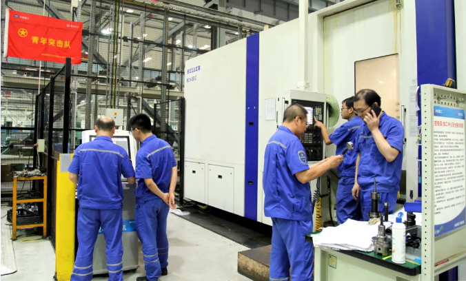 凌晨三点的中国船舶集团旗下重庆红江联合厂房,室外,三伏天近40℃的高温带来的酷热并没有因入夜而降下来;室内,机床轰响灯火通明,一号车间最先进的三台卧式加工中心开足马力全速运转。