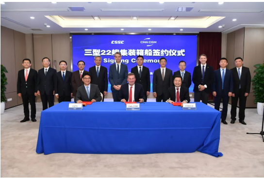3型22艘绿色集装箱船签约,中国船舶集团喜获历史最大单笔集装箱船订单。
