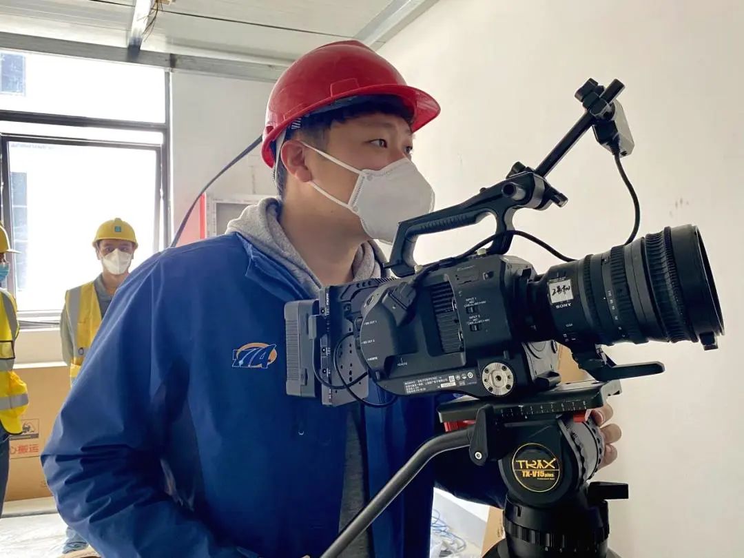 声像保障第一时间到位。七一四所青年突击队员潘伟、张浩伟抵达当晚便投入到拍摄工作中。面对上百个工作面、数千位建筑工人,潘伟、张浩伟发扬敢打敢拼的战斗精神,在现场架设了8个机位、2架无人机同时进行拍摄。有时为了找到一个合适拍摄角度,两人克服恐惧在高达八米的屋顶架设拍摄机位,为工程建设拍摄下了近百份宝贵的声像资料。