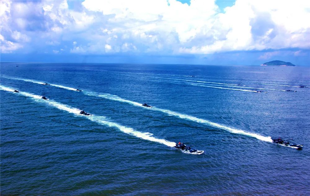 如今的人民海军舰阵如虹、白浪如练
