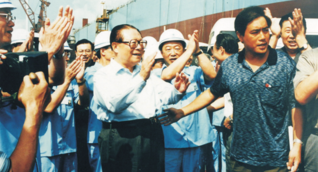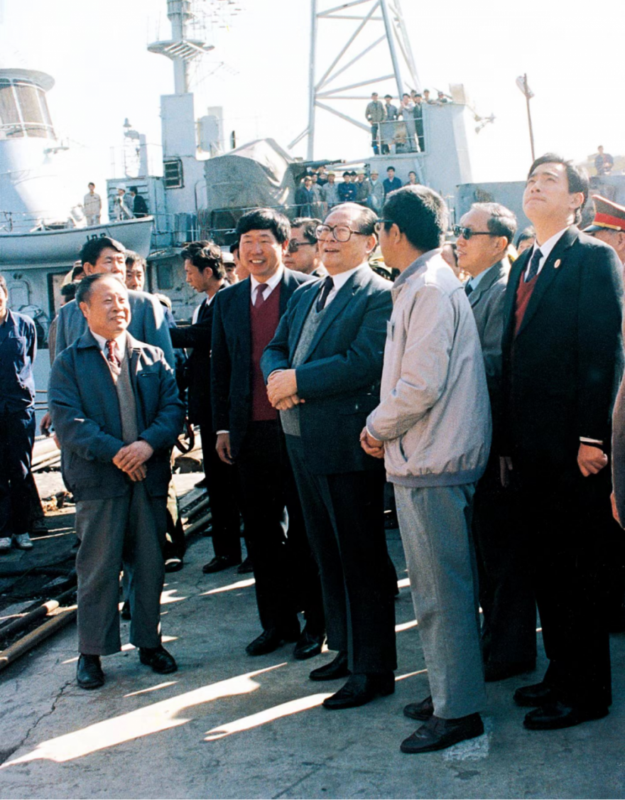 江泽民同志曾先后三次到江南造船视察。图为1994年4月29日,江泽民同志视察江南造船。据相关人士回忆,当时江泽民同志视察江南有两个原因,一是“五一”节快要到了,江泽民同志要看望工人阶级,就选择了江南造船,因为江南造船是产业工人的摇篮;第二个原因是112舰计划当年5月8日前交舰,交舰前江泽民同志要先视察。