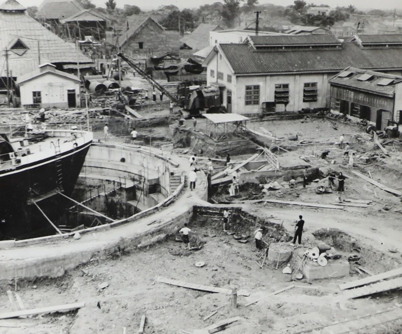 1958年广州,1958年,广船国际的前身广州造船厂的造船坞,图中的履带式起重机是广州造船厂主要的起重设备。