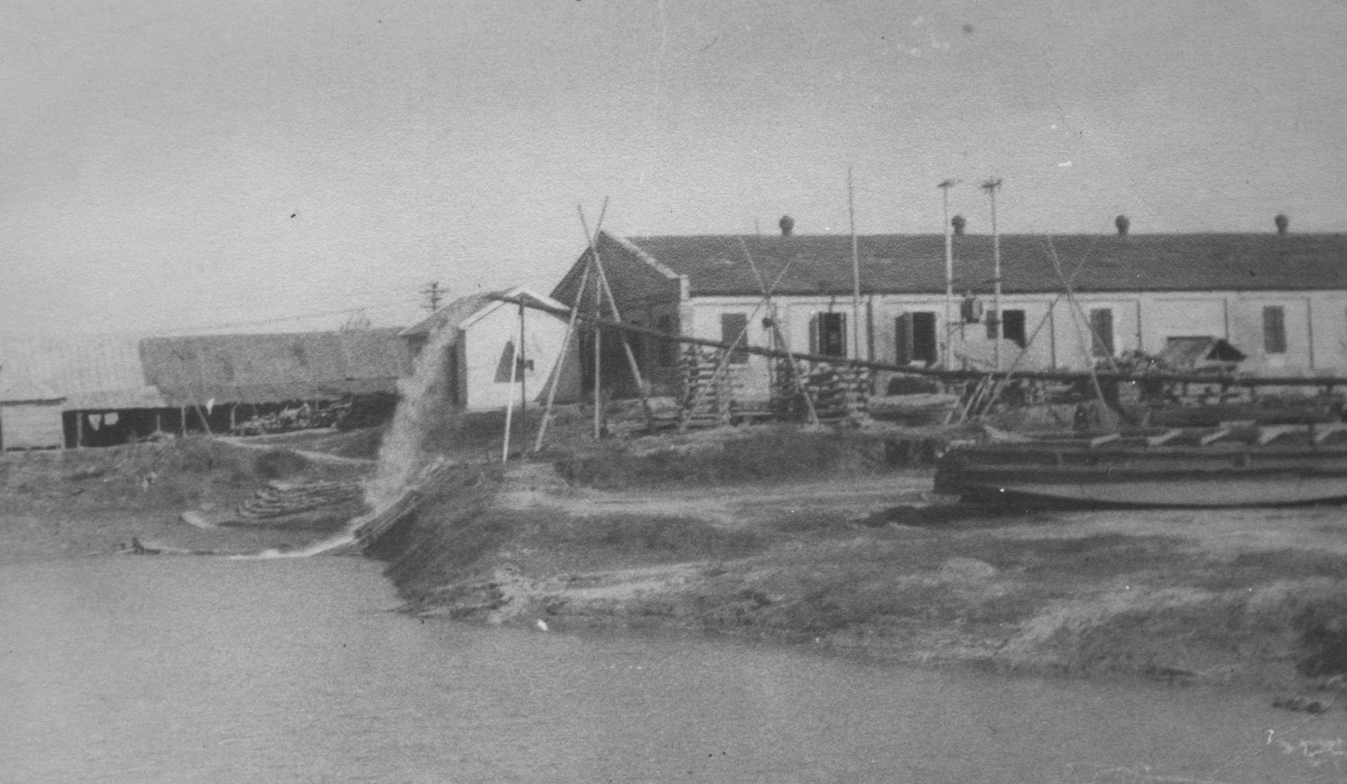 1934年武汉,解放前,武昌造船坐落于晚清时期湖广总督张之洞开办的纺纱局遗留的旧址武昌老城区文昌门外长江边。厂房是在“纺纱局”的旧址上兴建的,多为老旧房屋改造而成,年久失修,破败不堪。