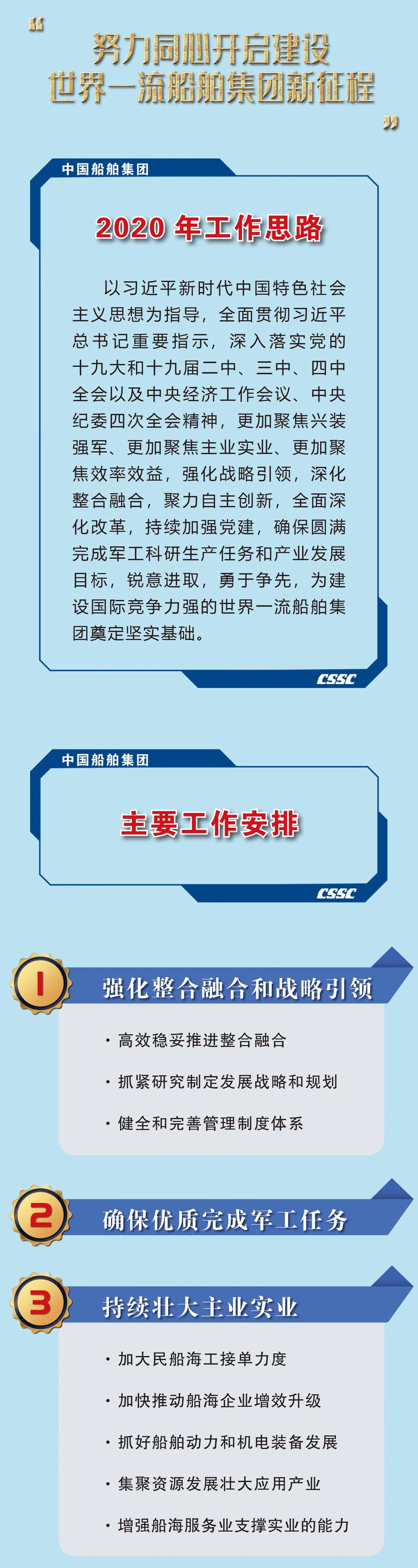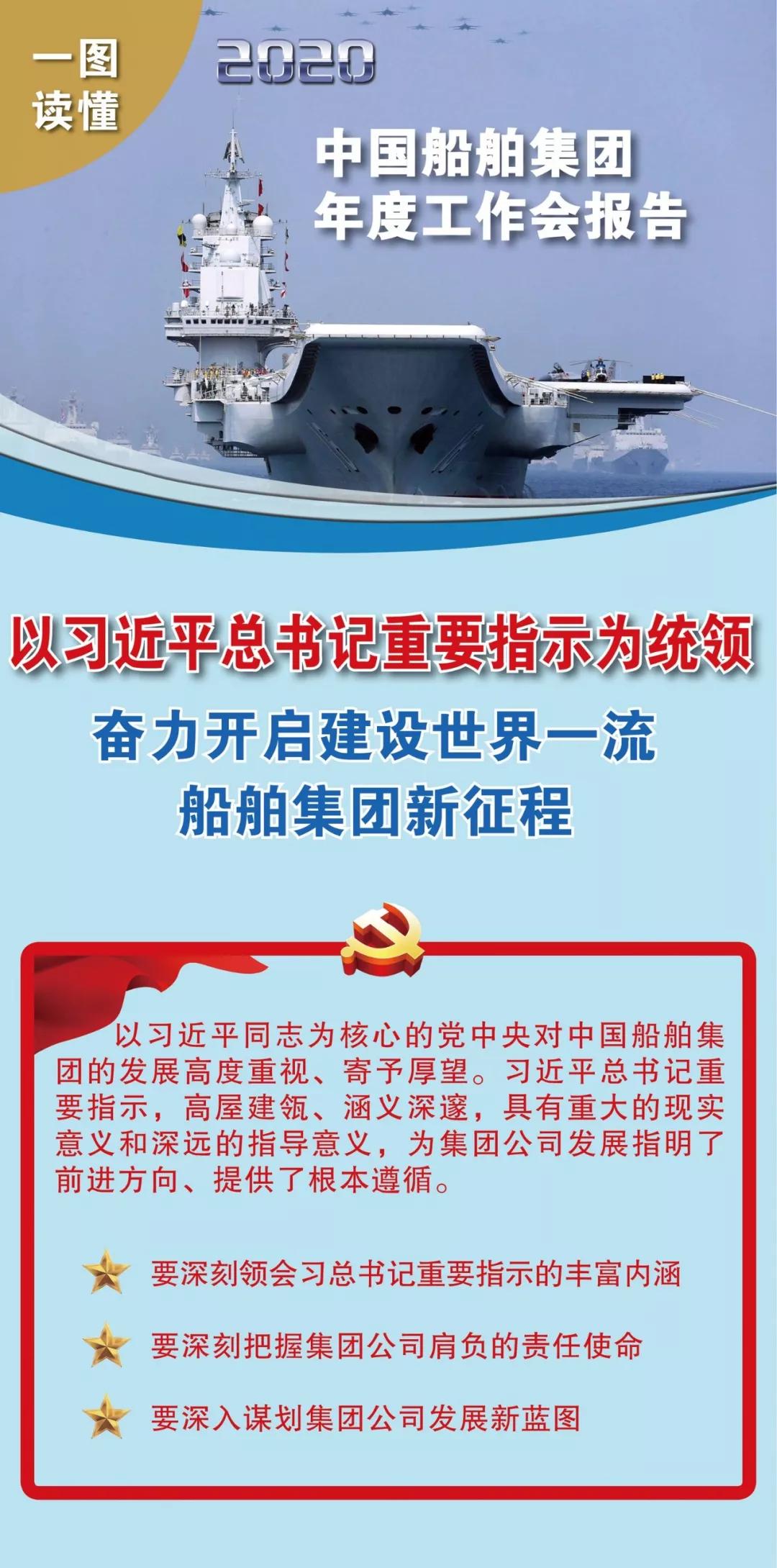 1月19日,在中国船舶集团有限公司2020年度工作会议上,中国船舶集团党组书记、董事长雷凡培作了题为《以习近平总书记重要指示为统领 奋力开启建设世界一流船舶集团新征程》的工作报告。