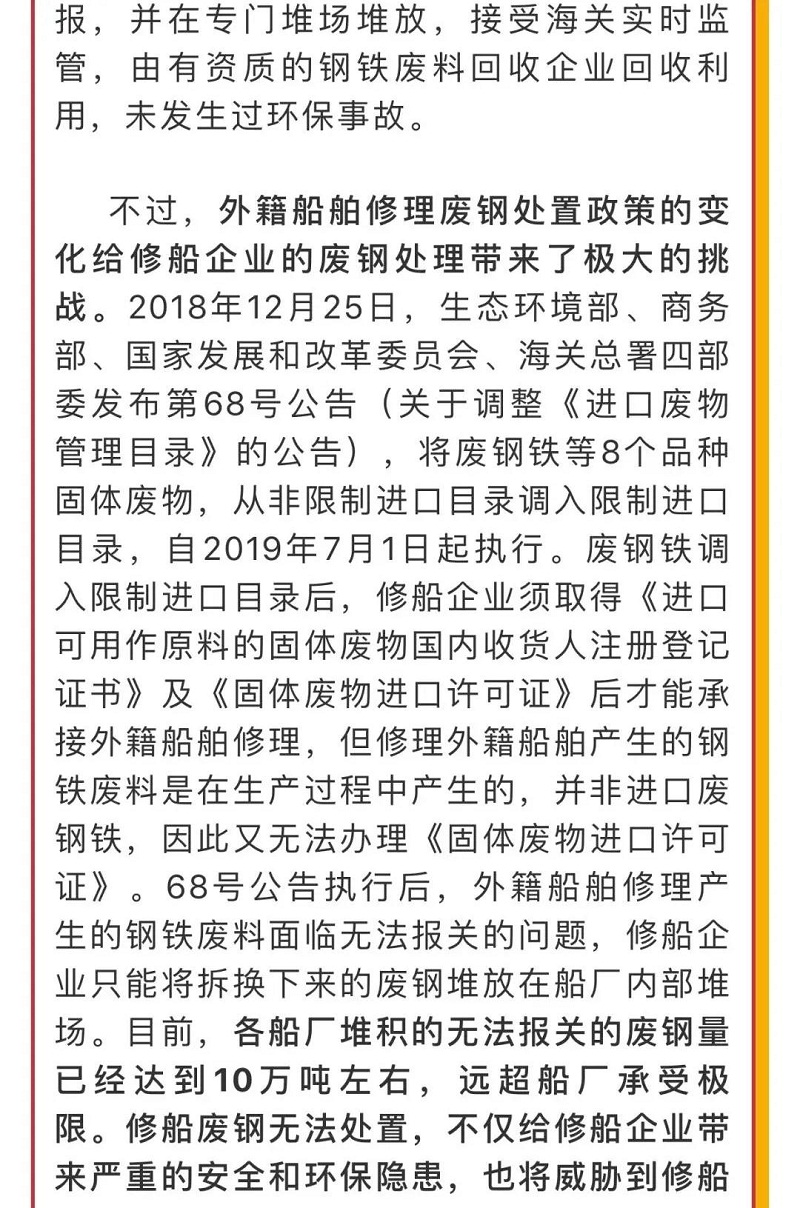 船舶看两会|全国人大代表马加友:修船废钢政策调整势在必行!