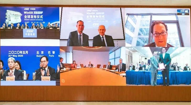 发布仪式采用视频形式,在中国北京、上海,法国巴黎、马赛和瑞士温特图尔全球五地远程连线同步举行。在各方嘉宾见证下,WinGD X92DF通过BV(法国船级社)型式认可,雷凡培宣布向全球发布。