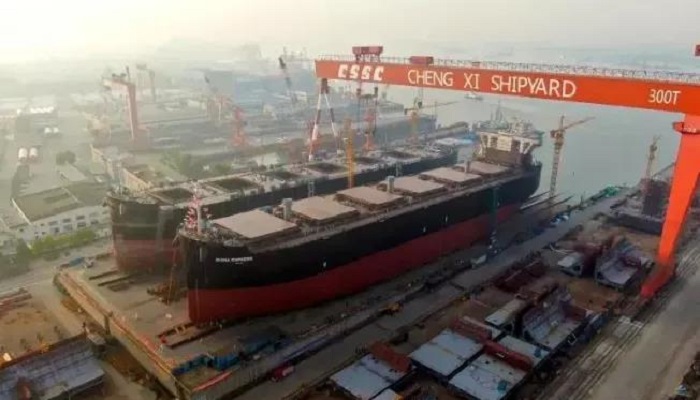 △ 中船澄西建造的7万吨木屑船顺利下水(点击图片查看新闻详情)