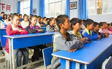 △ “中船春蕾班”学生在明亮的阶梯教室上课