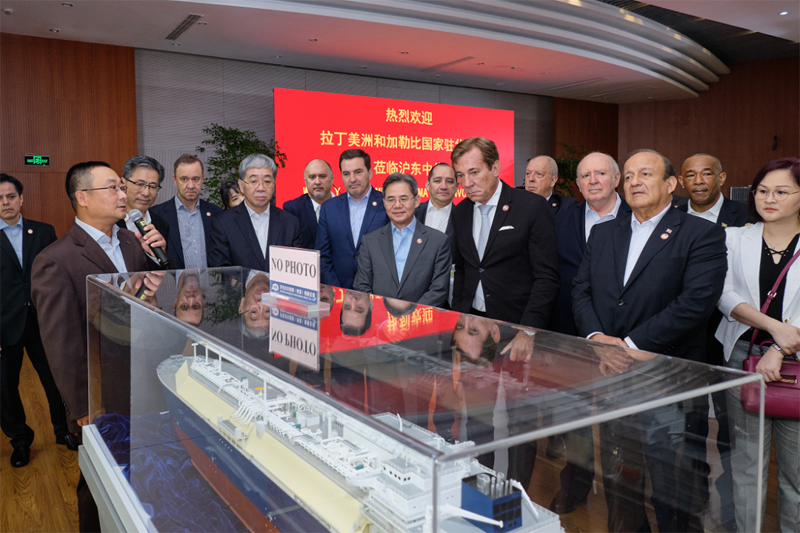 使节代表团先后参观了中国船舶集团旗下沪东中华、江南造船,听取了两家企业重点产品、经营生产发展的总体介绍,并赴船坞、码头实地了解了在建的目前全球最大双燃料23000TEU集装箱船以及其他高技术、高附加值船舶建造情况。
