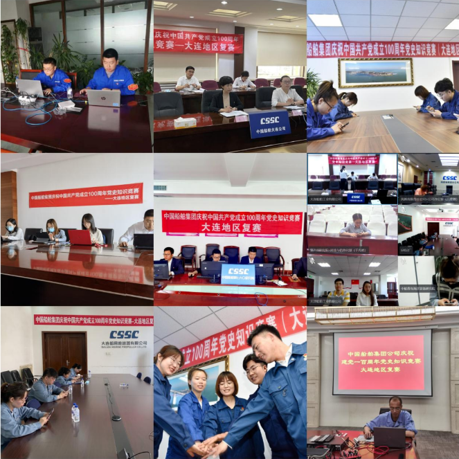 为庆祝中国共产党成立100周年,扎实推动党史学习教育,由中国船舶集团主办、集团公司党群工作部指导、中国船舶集团党校承办的党史知识竞赛自4月中旬起在集团公司内全面开展。各地区、各成员单位按要求进行了党史知识竞赛筹备以及地区遴选和复赛工作。5月27~31日,集团公司党史知识竞赛8个赛区分别组织来自总部和100家成员单位的407名选手,登录集团公司党校“中船e学”平台,通过集中在线测试完成了复赛。一起来看看精彩瞬间 ——