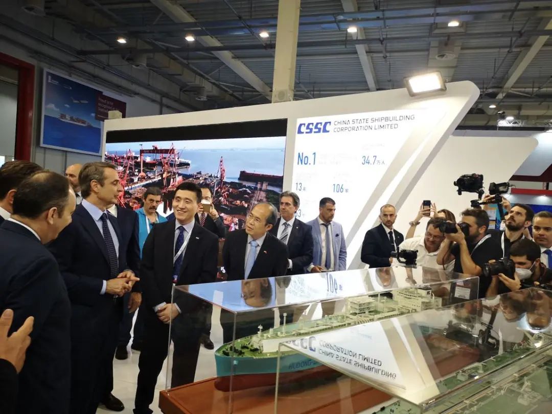 展会期间,中国船舶集团全面展示了船海产业领域完整的产品体系与前瞻性的设计营销理念,体现了中国船舶集团在行业中强劲的品牌影响优势与国际竞争实力。中国船舶集团展台吸引了希腊总理米佐塔基斯、中国驻希腊大使肖军正等政界高层驻足参观,听取讲解,同时也吸引了来自全球的主流知名船东和国际各大船级社代表以及设备配套客户的到访参观,了解中国船舶集团最新发展情况,交流探讨未来合作机会。