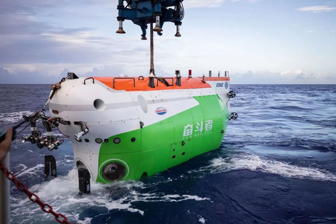 在载人深潜器方面,先后研发了“蛟龙”号、“深海勇士”号、“奋斗者”号。2020年11月10日,“奋斗者”号在马里亚纳海沟成功坐底,深度达到10909米,刷新了我国载人下潜新纪录,成为全球载员人数最多、海底作业时间最长、作业能力最强的万米级载人装备,使我国在激烈的深海科技竞争中稳居第一梯队。为此,习近平总书记发来贺信:“‘奋斗者’号研制及海试的成功,标志着我国具有了进入世界海洋最深处开展科学探索和研究的能力,体现了我国在海洋高技术领域的综合实力。从‘蛟龙’号、‘深海勇士’号到今天的‘奋斗者’号,你们以‘严谨求实、团结协作、拼搏奉献、勇攀高峰’的中国载人深潜精神,为科技创新树立了典范。”