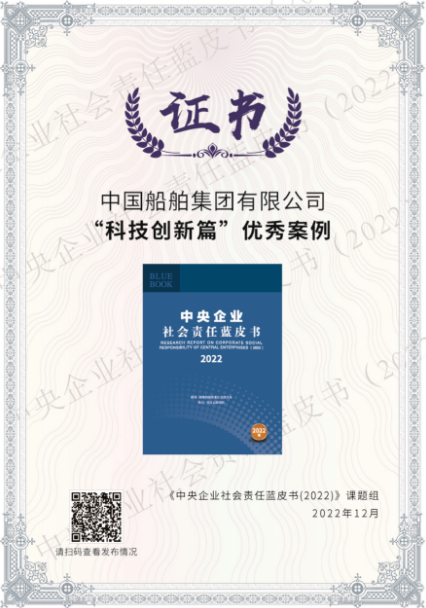 中央企业社会责任蓝皮书(2022)还发布了各领域优秀履责案例,中国船舶集团案例《为进军万米深海锻造国之重器》入选“科技创新篇”优秀案例。该案例全面展示了中国船舶集团围绕国家进军深海战略需要,着力自主创新、强化科技攻关,先后研制出“蛟龙”号、“深海勇士”号、“奋斗者”号载人深潜器,推动我国载人深潜器从无到有、从有到优的生动实践,体现了中国船舶集团勇担创新重任、勇攀科技高峰的责任担当。