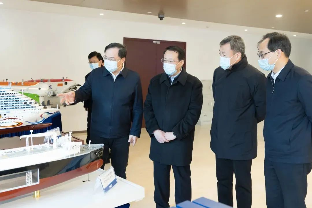 中国船舶集团总部于2021年12月迁驻上海,去年经营业绩再创新高。在温刚、杨金成的陪同下,龚正察看了中国船舶集团重点船舶产品模型,深入了解中国船舶集团深化科技创新、实施重大项目,对标国际先进、夯实技术基础等方面情况。