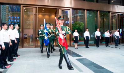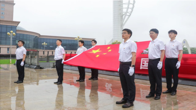 全体干部职工精神焕发,以崇高的敬意,向国旗、向伟大的祖国致敬。