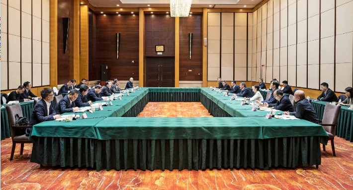 郝鹏对温刚一行到访表示欢迎,对中国船舶集团长期以来给予辽宁振兴发展的大力支持表示感谢。郝鹏指出,当前,辽宁正深入贯彻落实习近平总书记重要指示精神和党的二十大作出的决策部署,牢记嘱托、感恩奋进,全力实施全面振兴新突破三年行动,在新时代东北振兴上展现更大担当和作为。辽宁省与中国船舶集团合作基础良好,合作前景广阔,希望双方近一步发挥各自优势,不断拓展合作领域、提升合作层次,取得更多合作成果。辽宁将搭建更好平台、营造良好环境,全力推动中国船舶集团在辽成员单位实现高质量发展,更好服务国家重大战略。