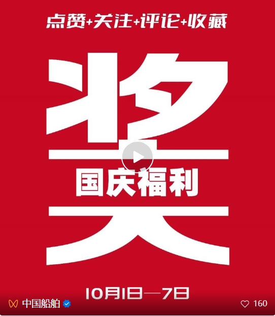 国庆7天乐,我们一起欢度国庆,中国船舶集团新媒体平台抽奖啦!