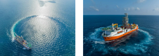 “梦想”号电站容量达到30兆瓦,最大航速超过13节,比同类船高8%以上,DP-3级动力定位,6级海况下正常作业。