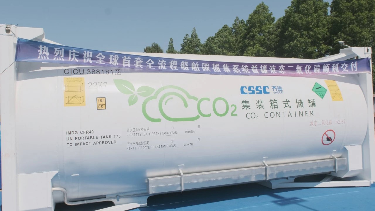 2024年5月10日,“全球首套全流程船舶碳捕集系统首罐液态二氧化碳接收仪式暨交流会” 在上海举办,中国船舶集团所属上海齐耀环保科技有限公司将岸端卸载的首罐液态二氧化碳正式交付使用方,标志着船用碳捕集技术在全球范围内首次完成“二氧化碳捕集-液化存储-卸岸-转运-再利用”的全流程生态闭环,成为船用碳捕集产业里程碑式的案例。