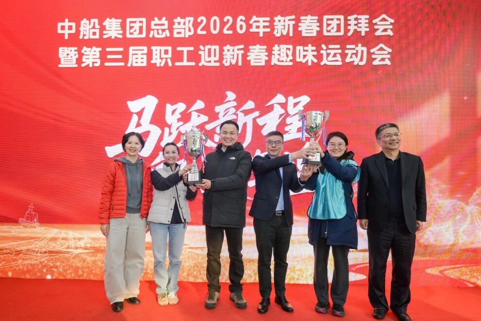 团拜会现场,集团公司领导为运动会获奖队伍代表颁奖。集团总部各部门和二级管理单位通过视频集体“云拜年”,感受属于中船人的龙马精神与团圆暖意,充分展现了中船人在“十五五”开局之年,一马当先开新局、矢志奋进建新功的昂扬风貌,凝聚起高质量建设世界一流船舶集团的磅礴力量。