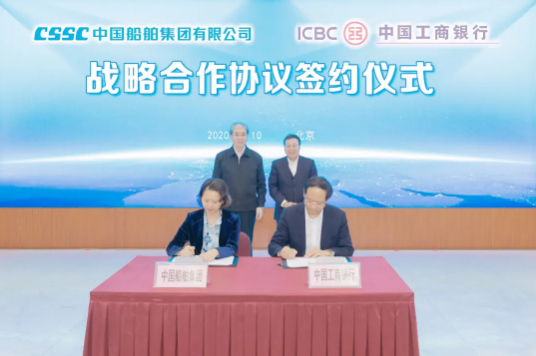 12月10日,中国船舶集团有限公司与中国工商银行股份有限公司在京签署战略合作协议。中国船舶集团党组书记、董事长雷凡培,党组成员、总会计师贾海英,工商银行党委书记、董事长陈四清,党委委员、副行长王景武出席签约仪式。贾海英、王景武分别代表双方在协议上签字。同时,在双方领导的共同见证下,中国船舶集团旗下中船贸易公司与工商银行旗下工银金融租赁签署了战略合作协议。