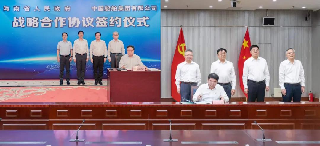 8月11日,中国船舶集团有限公司与海南省政府通过“云签约”方式签署战略合作协议,共同见证双方长期合作结出的又一硕果。中国船舶集团党组书记、董事长雷凡培,党组副书记、总经理杨金成,党组成员、副总经理钱建平、杜刚、盛纪纲,海南省委书记沈晓明,省委副书记、省长冯飞,省委常委、省委秘书长孙大海,省委常委、三亚市委书记周红波,副省长王路出席仪式。钱建平和王路分别代表双方在协议上签字。签约前,双方围绕共同服务国家战略、深化战略合作进行了交流。