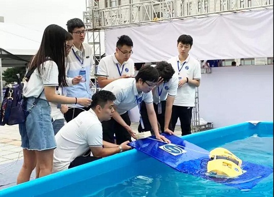 比赛当日,同学们更是顶住竞争压力,在天气非常恶劣的情况下,沉着应对,让两件航行器在水下出色地完成了指定动作,获得了评委专家们的高度赞扬。