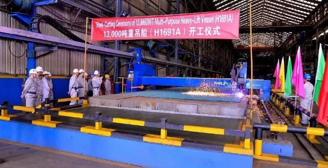 11月12日,沪东中华造船(集团)有限公司为中国船舶(香港)航运租赁有限公司建造的系列13000吨重吊船中的6号船开工。该船由上海船舶研究设计院设计,总长149.99米,型宽25.6米,型深13.5米,设计吃水6.8米,结构吃水8.3米,入级DNV GL。 沪东中华将严格按照建模2.0的要求,以“严、紧、细、实”的工作作风,强化风险管控保质量过硬,注重细节管理促效率提升,建造优质船舶。