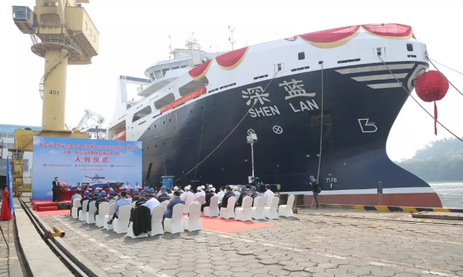 11月24日,青岛海洋科学与技术试点国家海洋实验室(以下简称“海洋试点国家实验室”)在黄埔文冲船舶有限公司举行了我国首艘渔业捕捞加工一体船“深蓝号”入列国家海洋实验室远海科学考察船队仪式。