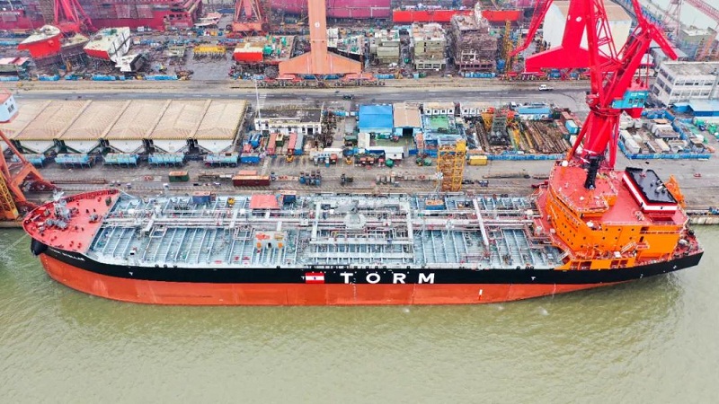 广船国际为TORM航运公司建造的7艘5万吨化学品/成品油船中最后一艘船提前2天完成试航归来。该型船加装开式除硫系统,是环保、节能、高效的新型油船,试航的完成,为抢抓完工节点赢得了宝贵时间,系列船全部交付指日可待!