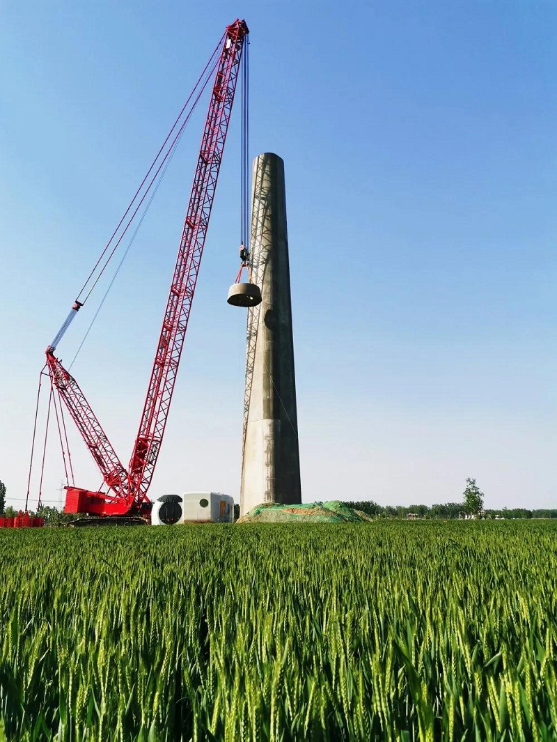 两年前,中国船舶集团旗下中国海装的120米钢混塔架机组成功完成吊装。