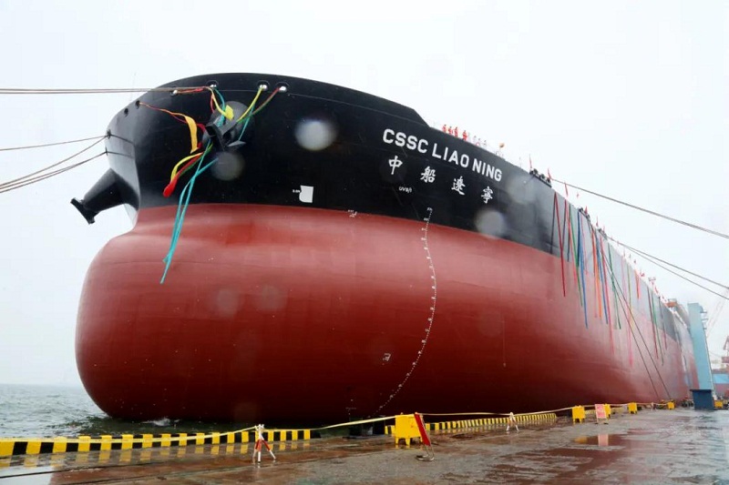 今天,中国船舶集团旗下大船集团为中船贸易所属租赁公司建造的30.8万吨超大型原油船“中船遼寧”号命名交付。“中船遼寧”号是大船集团自主开发的新一代极具市场竞争力的品牌船型。该船总长332.95米,型宽60米,最大载重量30.8万吨,属于无限航区船型,续航里程超过25000海里,在设计吃水20.5米可正常装载200万桶原油通过马六甲海峡。