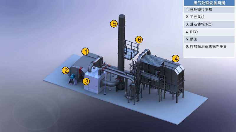 “多转轮+RTO”处理工艺:两套或多套沸石转轮作为吸附浓缩装置,1台RTO(蓄热式氧化炉,具备一定蓄热能力的燃烧炉,通过高温氧化的方式将气体中的可燃物质进行氧化,达到使气体净化的目的)作为燃烧净化装置的VOCs处理工艺。