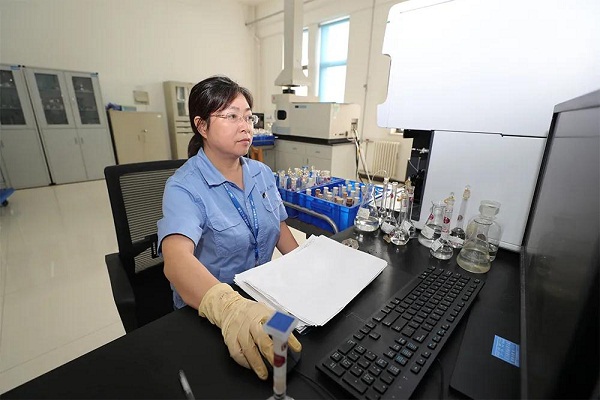 △七二五所高级工程师杜米芳正在进行舰船钛合金微量元素快速分析方法试验