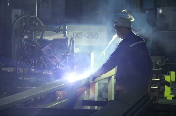 炙热的切割火焰,照亮了生产厂房