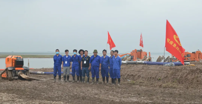 在近日举行的湖北省防汛抢险综合演练中中船应急展示了更多防汛抢险“神器”。中船应急抽调骨干力量15人,组建应急抢险队,携抗洪抢险装备、应急硬质机动路面、动力舟桥\直升机停机坪、泄流虹吸装备、履带式排涝机器人参加 。本次演练活动在荆州石首笔架湾举办,以重大险情处置任务为牵引,设置了搜救转移、内涝抢排、重大险情处置三个环节,因近期演练现场连续下雨,演练几乎是实战状态。