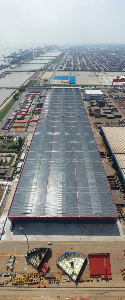 该厂房由中国船舶集团旗下中船九院设计,是国产大型邮轮建造工程的重要配套项目之一,创新采用一体化托架式先进结构形式的设计方案,并在施工中充分发挥设计引导、管理同步的优势,为工程整体稳步推进保驾护航。