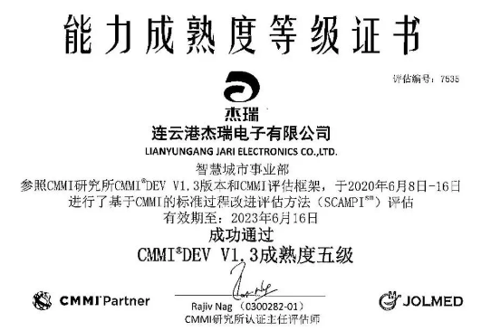 此次CMMI-Dev ML5级认证的顺利通过,标志着杰瑞电子的软件过程组织、技术研发与项目管理已经达到国际领先标准,具备优秀的软件成熟度及软件项目管理能力。