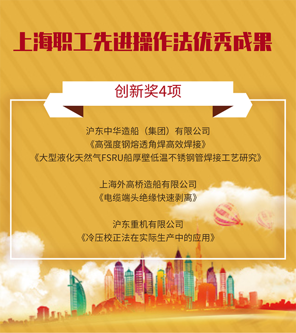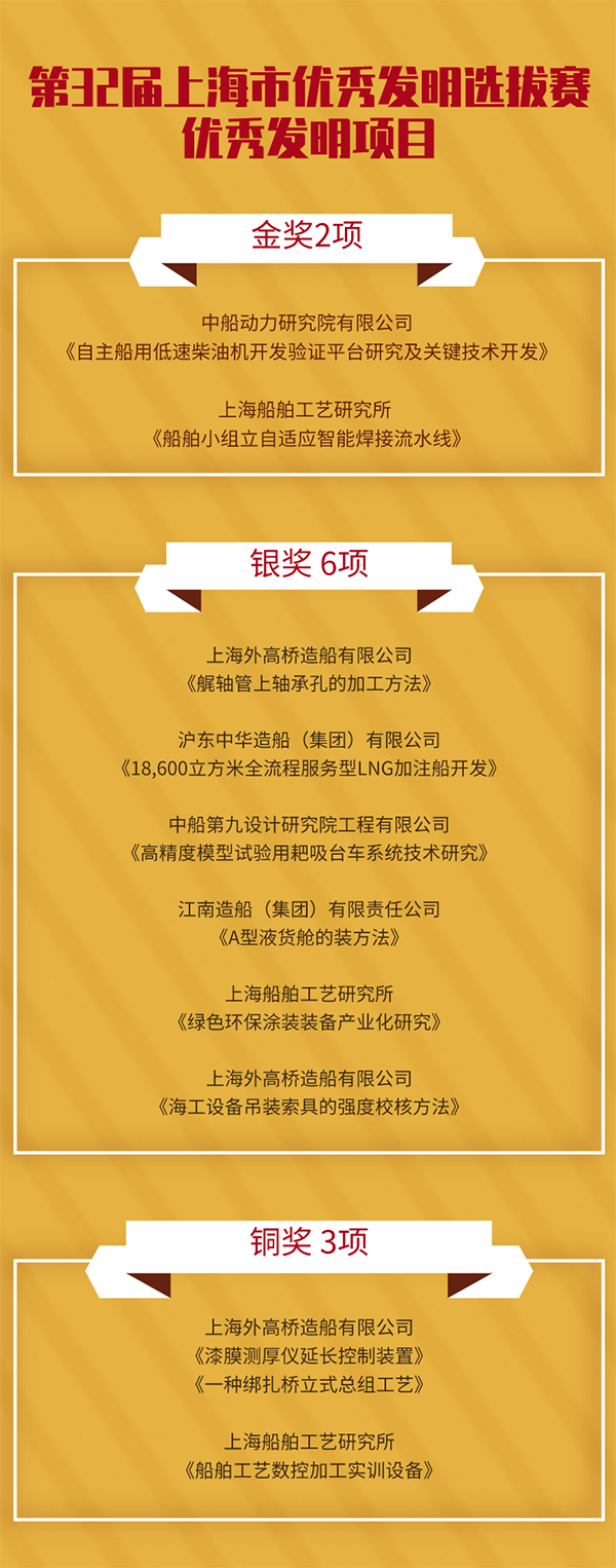 中国船舶集团上海船舶系统共19项职工创新成果,在第32届上海市优秀发明选拔赛等各项赛事中斩获佳绩。