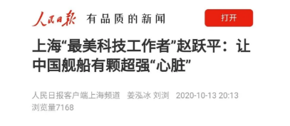中国船舶集团七〇四所首席专家赵跃平,获评2020年上海地区“最美科技工作者”。