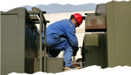 ▲奋斗在一线,第五研究室现场工作环境复杂,部分设备所处的安装环境温度高、空间非常狭小,需要携带工具钻入狭小空间进行设备更换,增大了作业的难度。图为工作人员