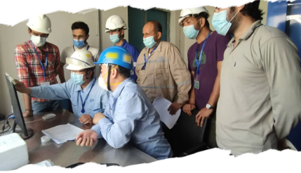 ▲用专业赢得信赖,海外某项目现场,制氢设备工程部员工加班加点开展设备调试,指导工作人员熟悉设备操作。图为技术人员现场开展技术讲解培训。