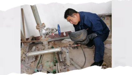 ▲保障科研生产,物业公司近期在各区维修设备,做冬季供暖前的最后准备工作。图为工作人员在派瑞产业园东区维修暖气循环加压泵。