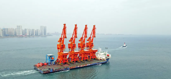 武汉船机4台带斗门机和1台移动料斗起航发往印尼
