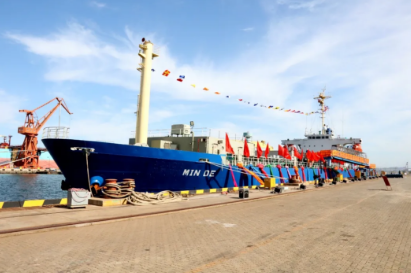 2020年,中国船舶集团旗下大船集团将散货船改装而成的“民德”号交付。这是全球首制、具有完全自主知识产权的舷侧开孔式养殖工船,具有鱼类养殖、饵料加工、活鱼运输等功能。交船的同时,大船集团与东方渔业签约10+8艘大型养殖工船项目。