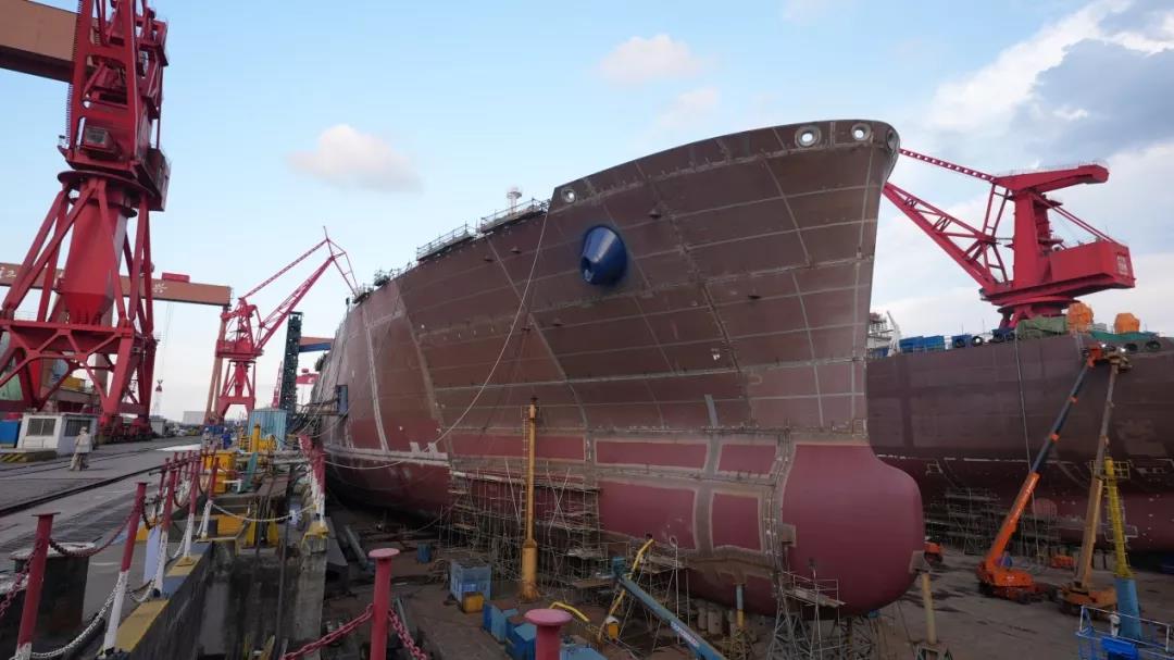 主甲板贯通:17.4万方LNG项目首制船坞内生产有序推进