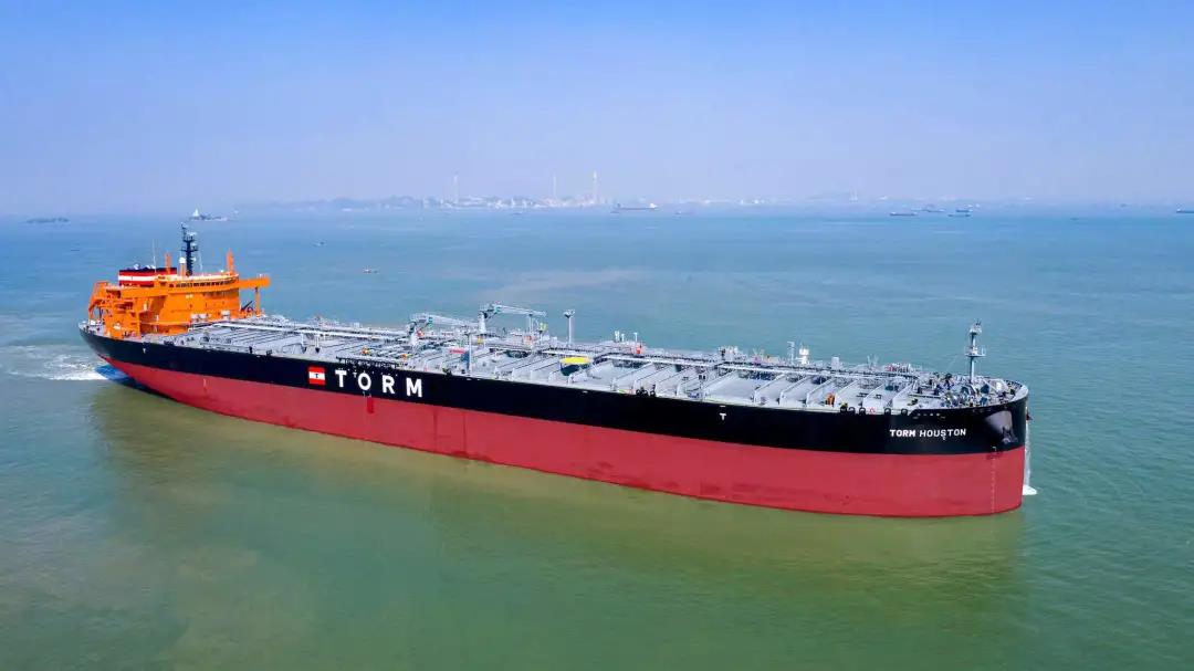 为丹麦TORM航运公司建造的11.4万吨成品油/原油船2号船实现“云交付”。