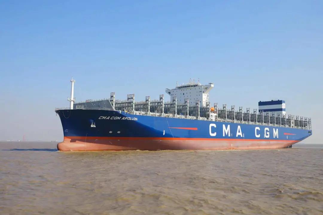 1月4日,新年第一个工作日。沪东中华联合中船贸易为法国达飞海运集团建造的第四艘15000TEU超大型集装箱船系列船“达飞·阿波罗”号在上海命名交付。