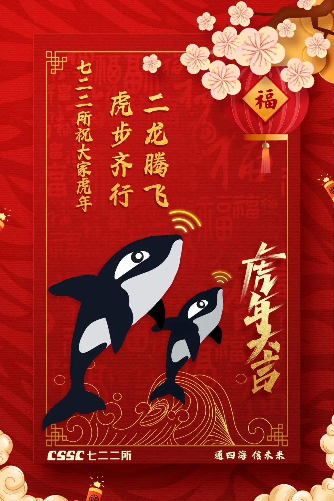 海报将船、潜艇、2022与“福”字巧妙地融为一体。“福”字中的船和潜艇,旨在致敬核潜艇精神、航母精神;“2”被设计成跑道形状,代表着七六〇所要在2022年踔厉奋发、笃行不怠,为建设世界一流船舶集团贡献更多力量!