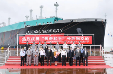 6月10日,中国船舶集团有限公司旗下沪东中华造船(集团)有限公司联合中国船舶工业贸易有限公司,为联合船东日本川崎汽船株式会社、工银金融租赁有限公司、申能(集团)有限公司建造的第二艘全球最大浅水航道第四代江海联运型8万立方米液化天然气(LNG)运输船“传奇和平”号命名交付。这是该公司复工复产以来交付的第四艘船,也是5月26日交付的“传奇太阳”号姊妹船,形成双姝合璧,为上海的社会经济发展、清洁能源保供和绿色产业振兴将发挥重要作用。